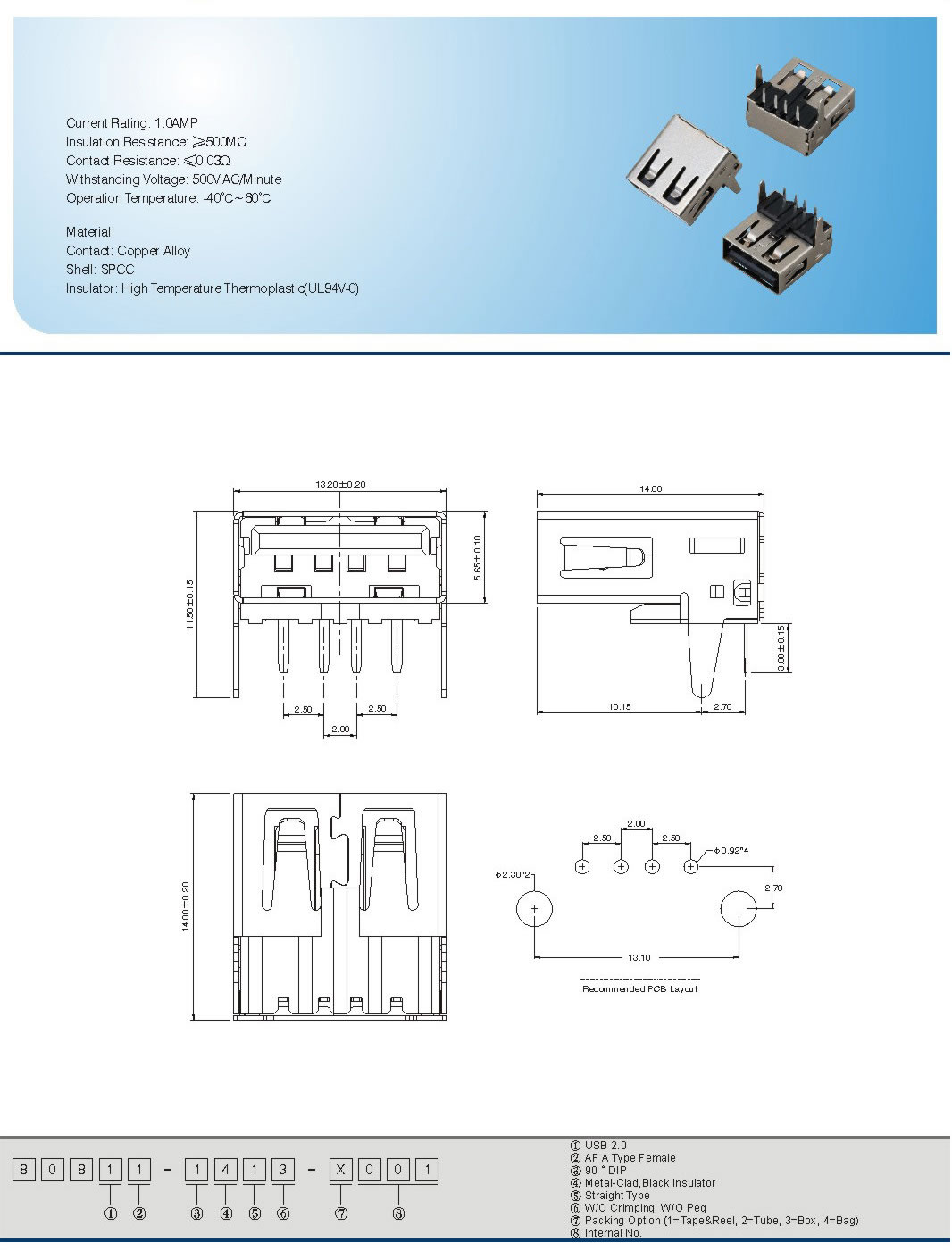 Insulator:High TemperatureThermoplastid(UL94V-O)