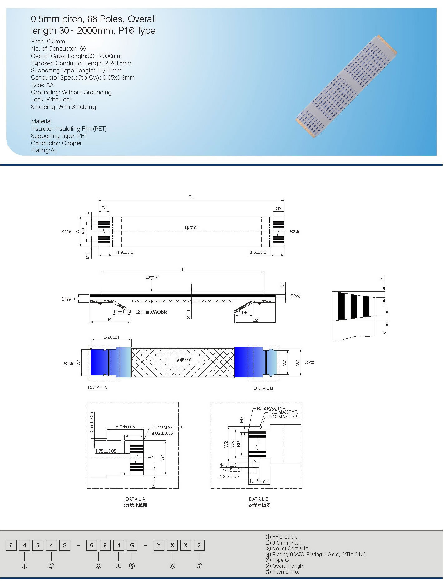 0.5mm pitch, 68 Poles, Overall