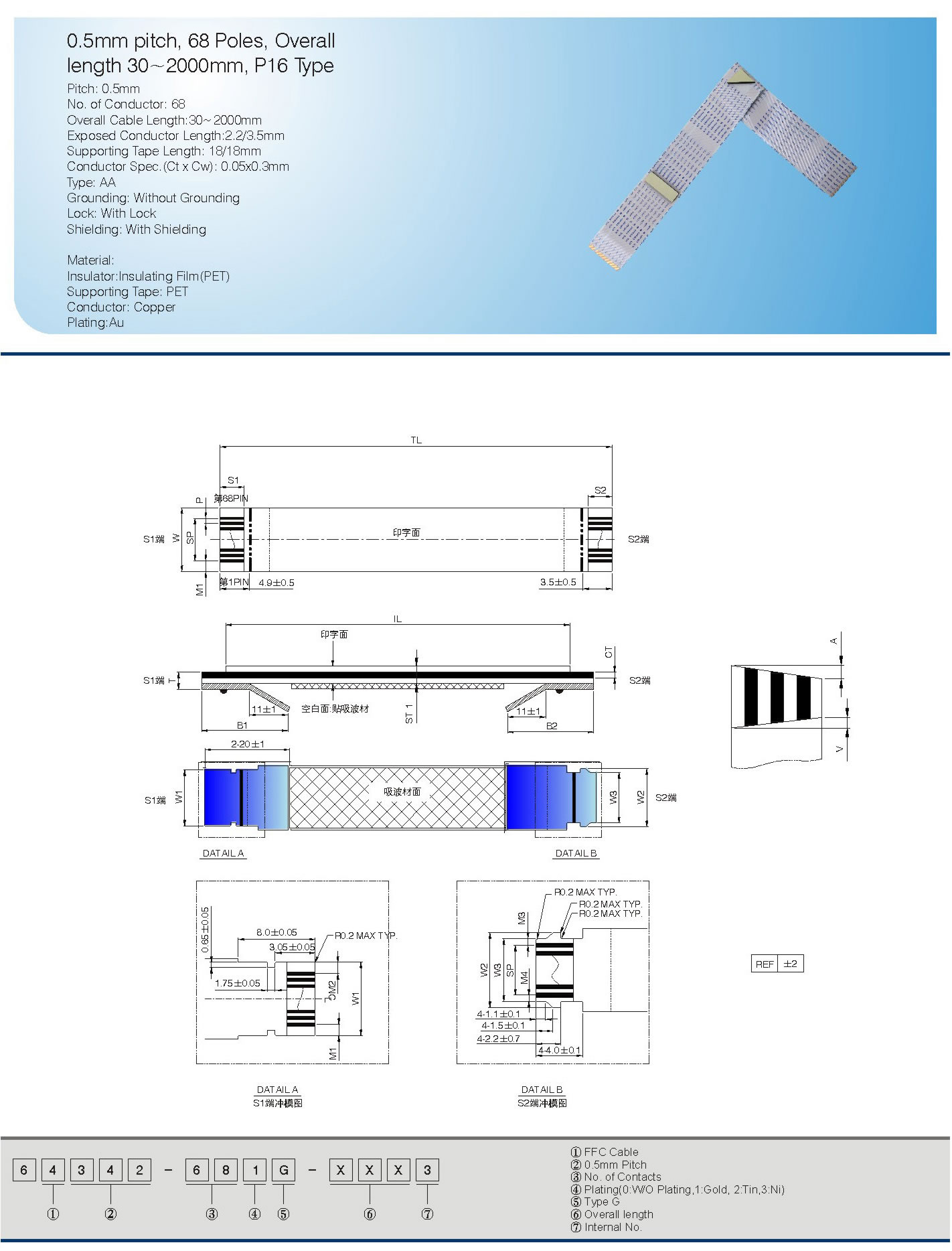 Conductor Spec.(Ct x Cw): 0.05x0.3mm