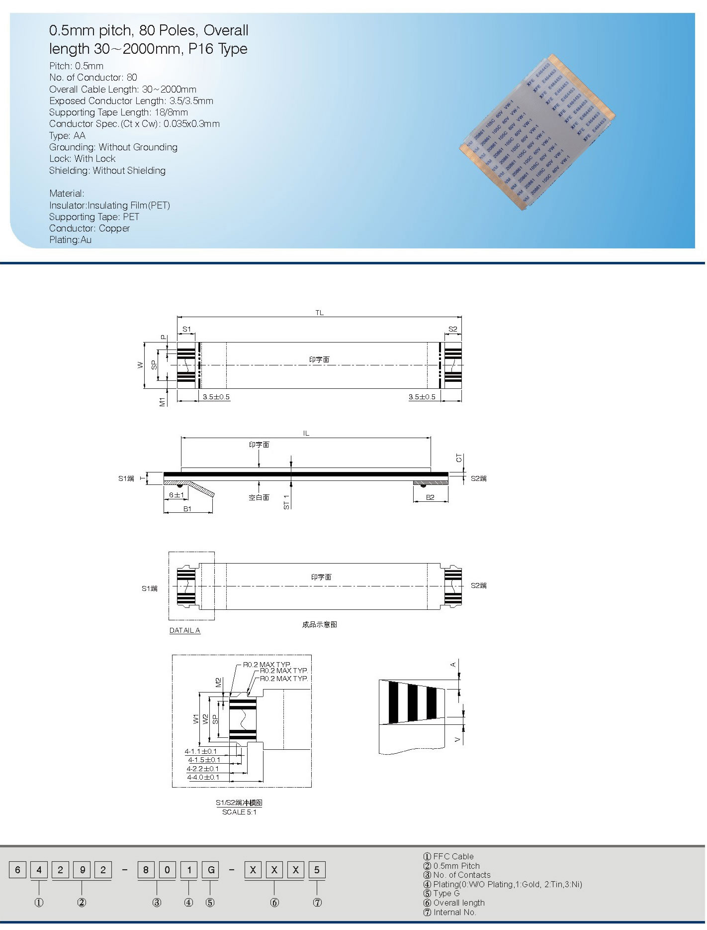0.5mm pitch, 80 Poles, Overall