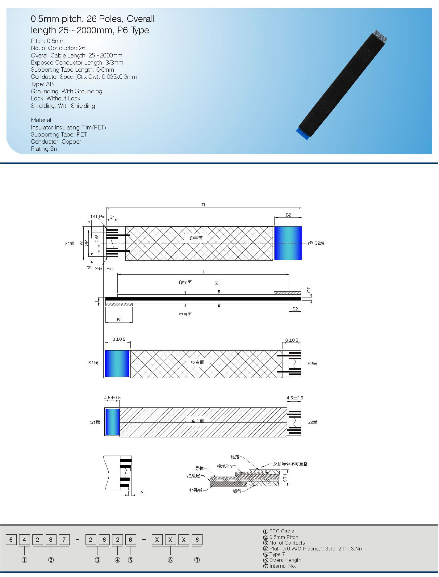 0.5mm pitch, 40 Poles, Overall