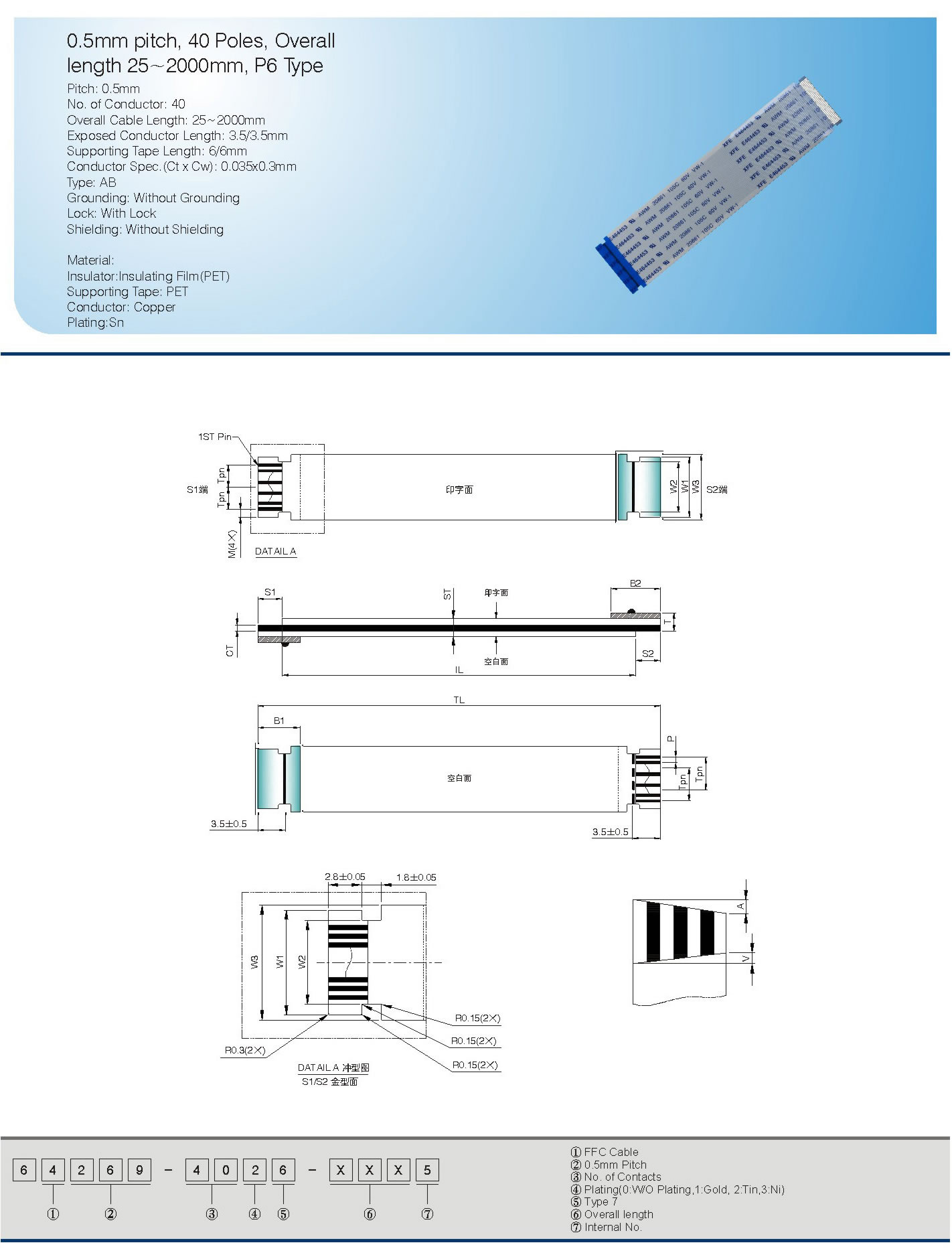 0.5mm pitch, 40 Poles, Overall