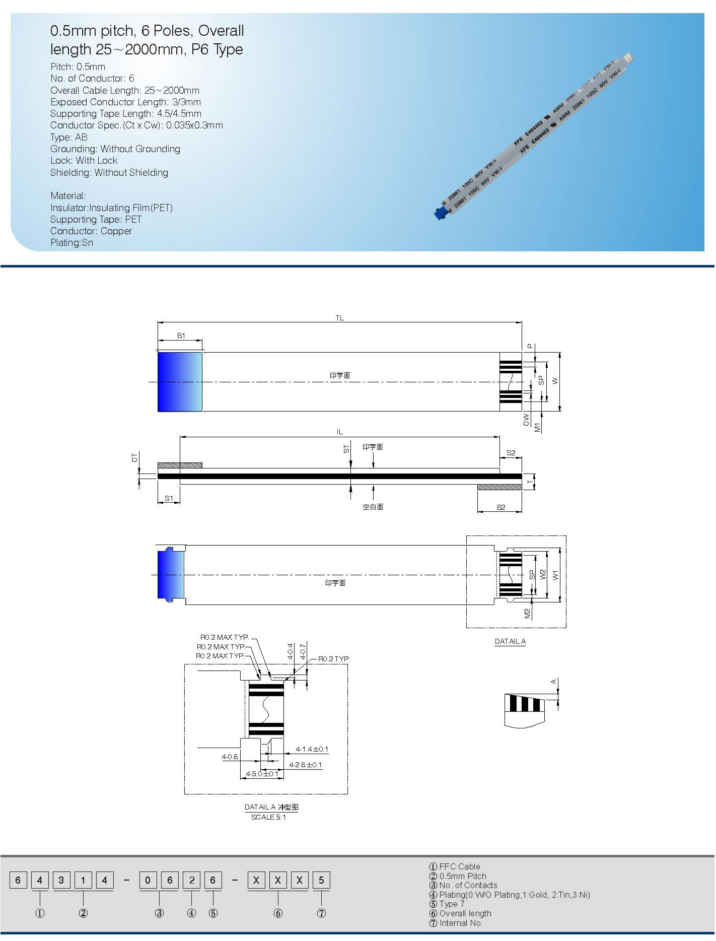 0.5mm pitch, 6 Poles, Overall
