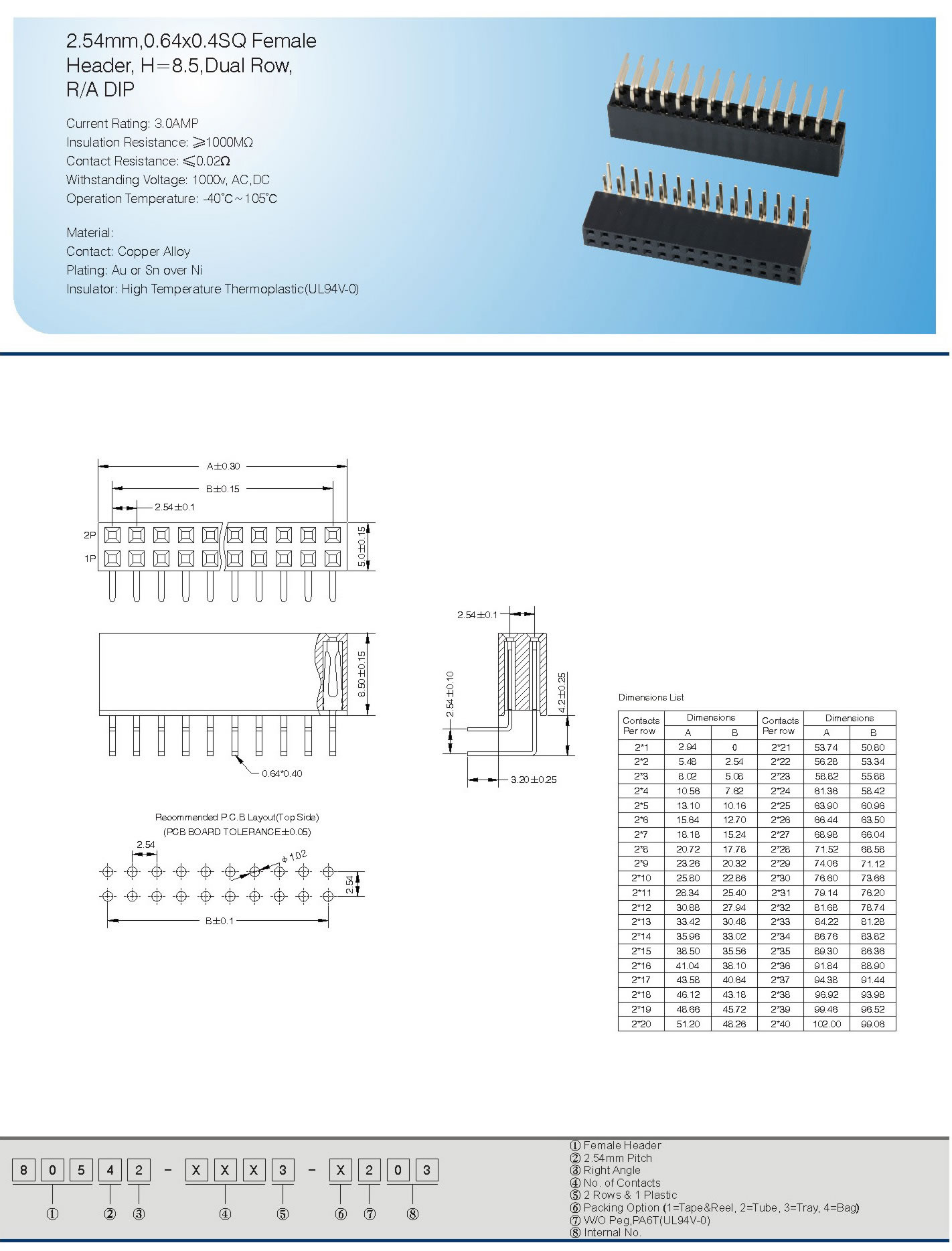 المسافة: 2.54mm